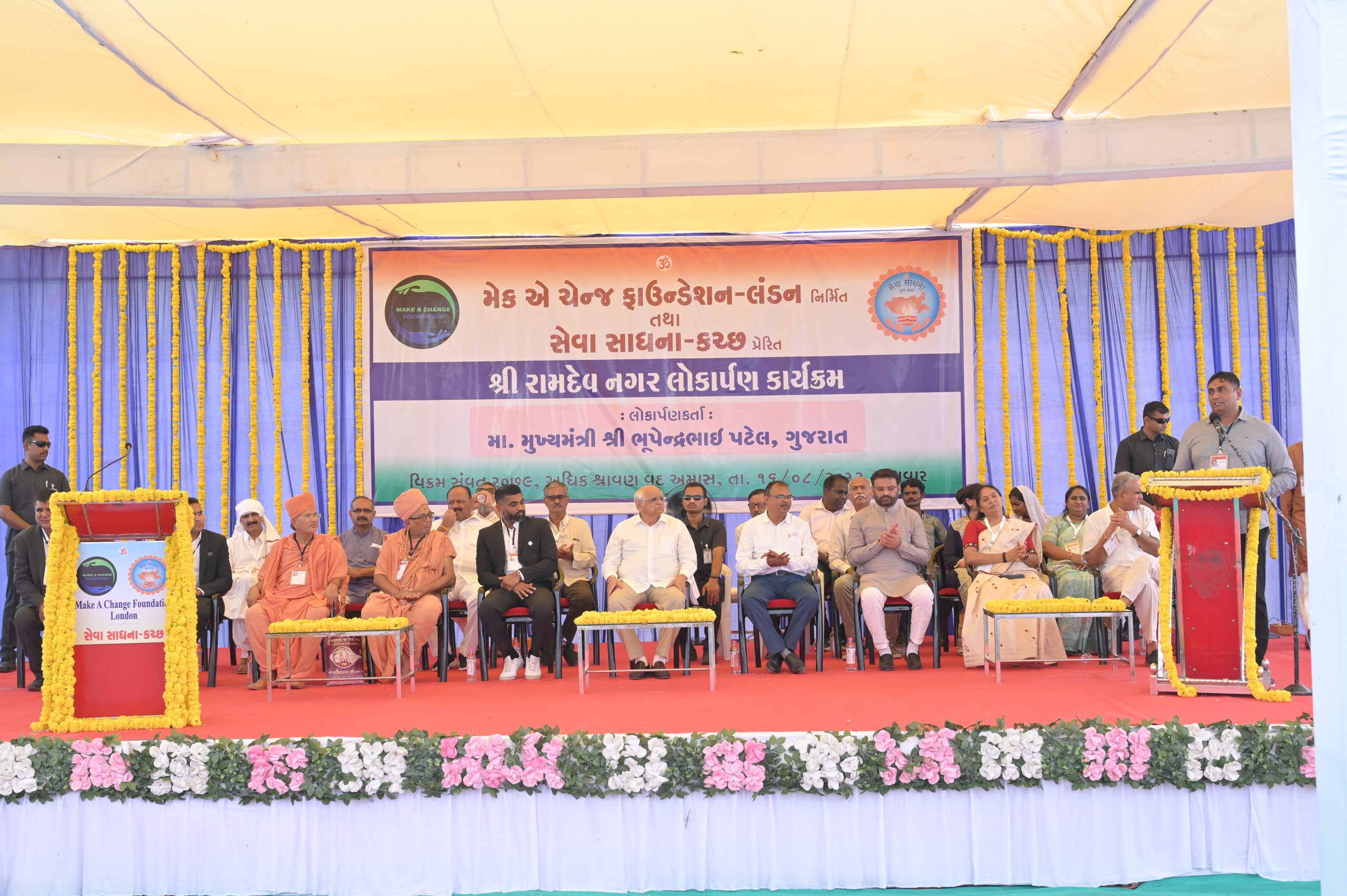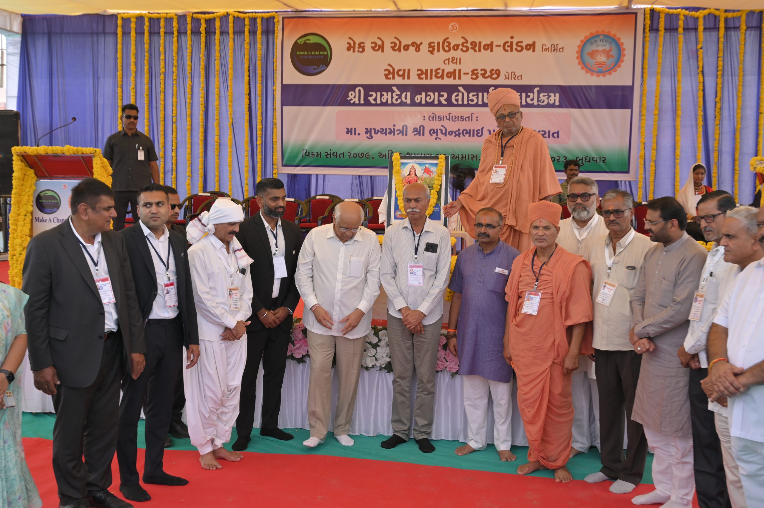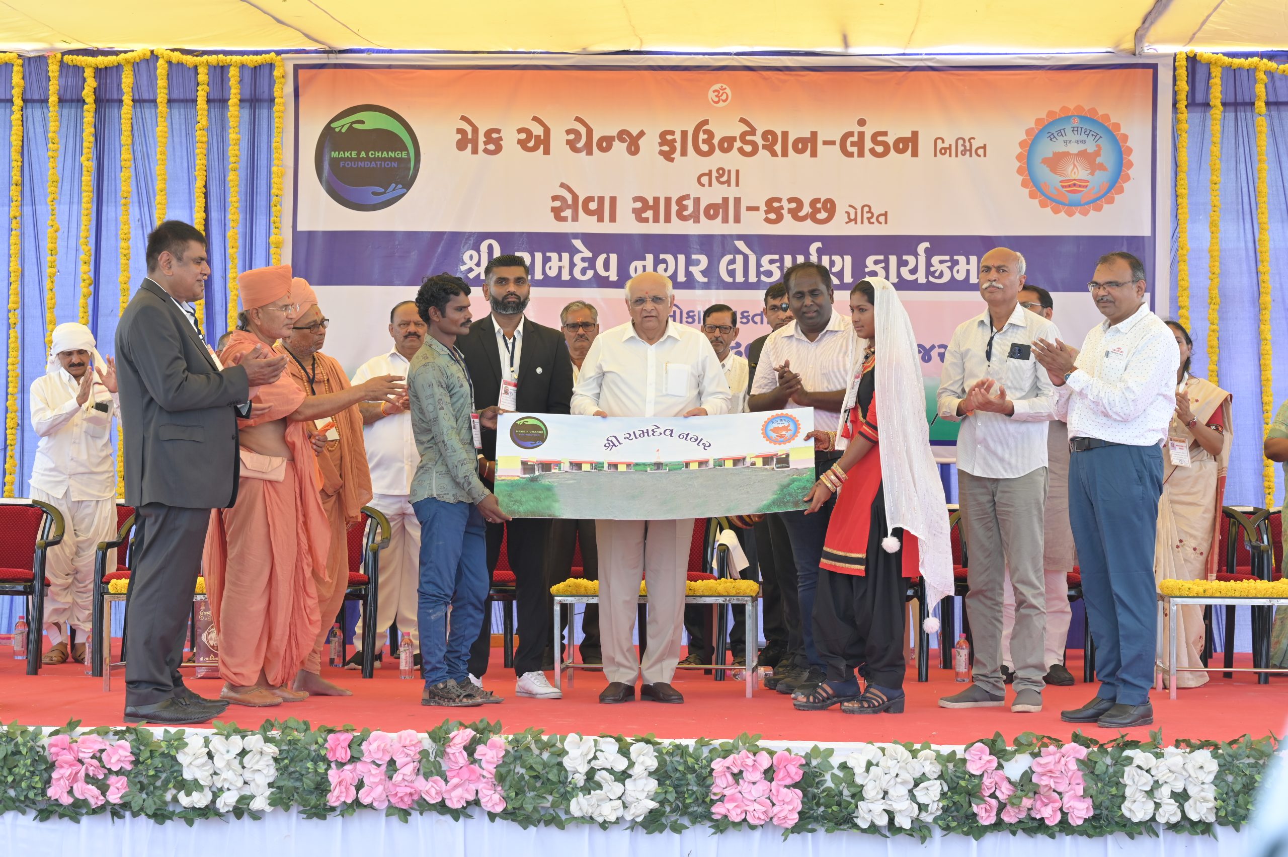 The Chief Minister of Gujarat Shri Bhupendrabhai Patel was the esteemed guest at the grand opening ceremony of newly constructed Sri Ramdev Nagar by the “Make a Change” Foundation. The event marked a significant milestone in the Foundation’s efforts to provide affordable housing to those in need. The Chief Minister commended the Foundation’s dedication to improving the lives of the less fortunate and praised their collaborative approach to addressing social issues.