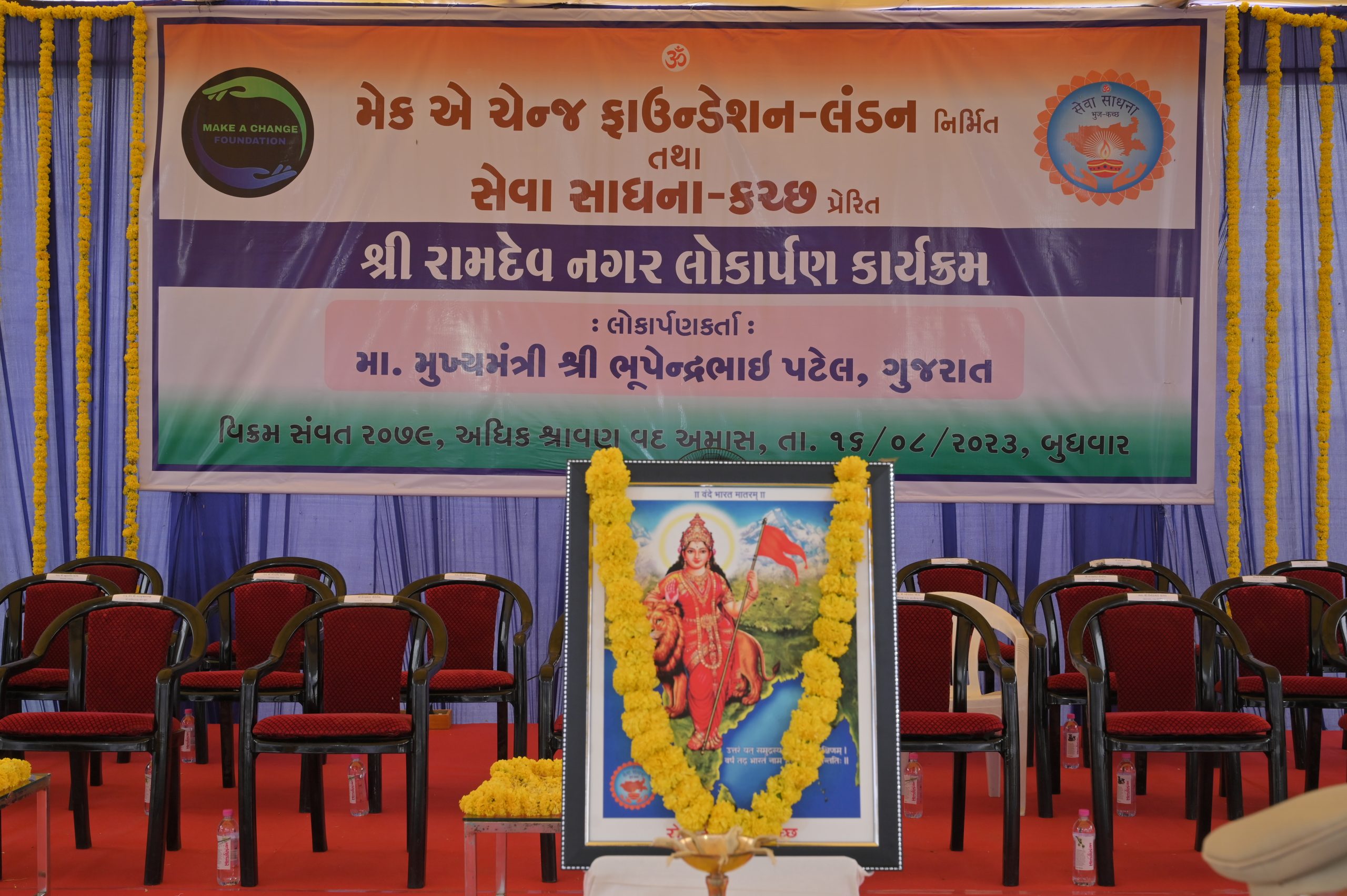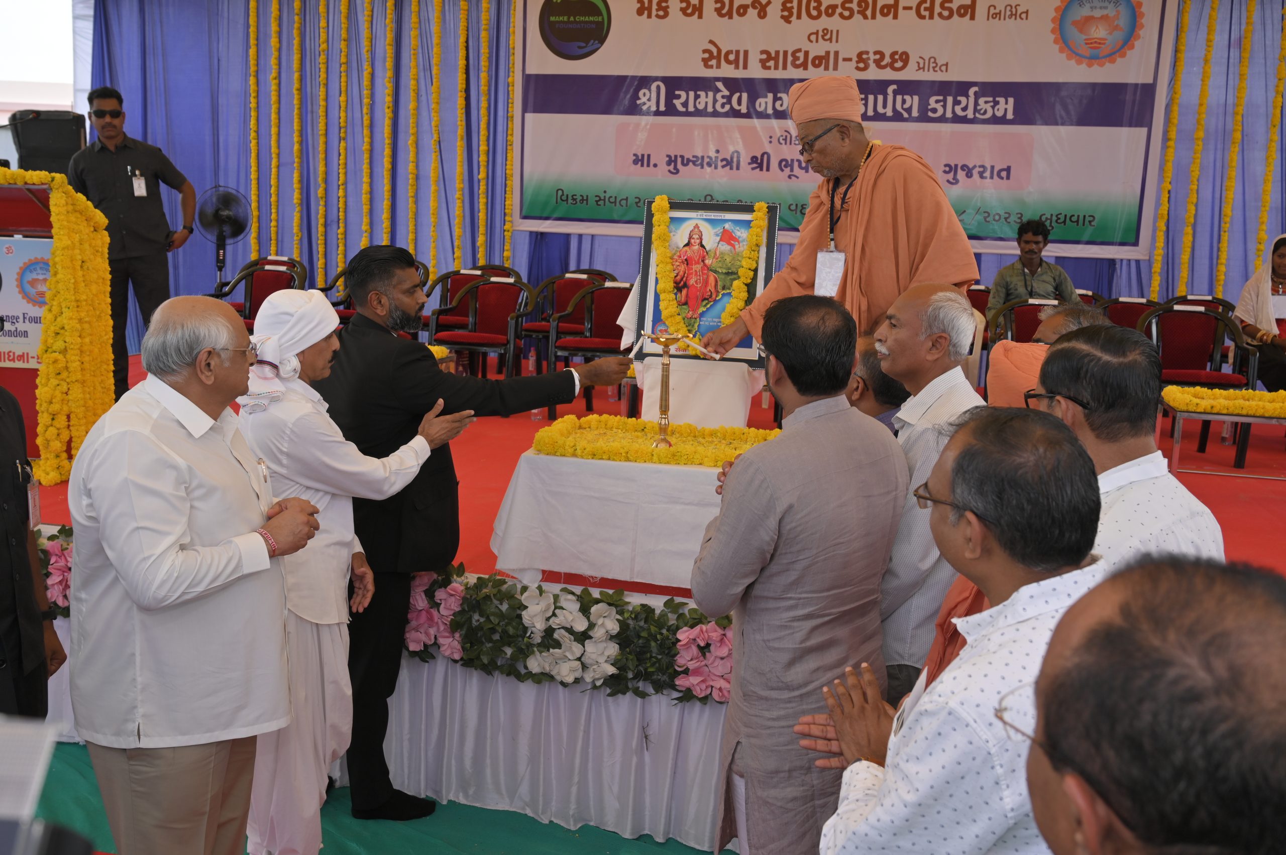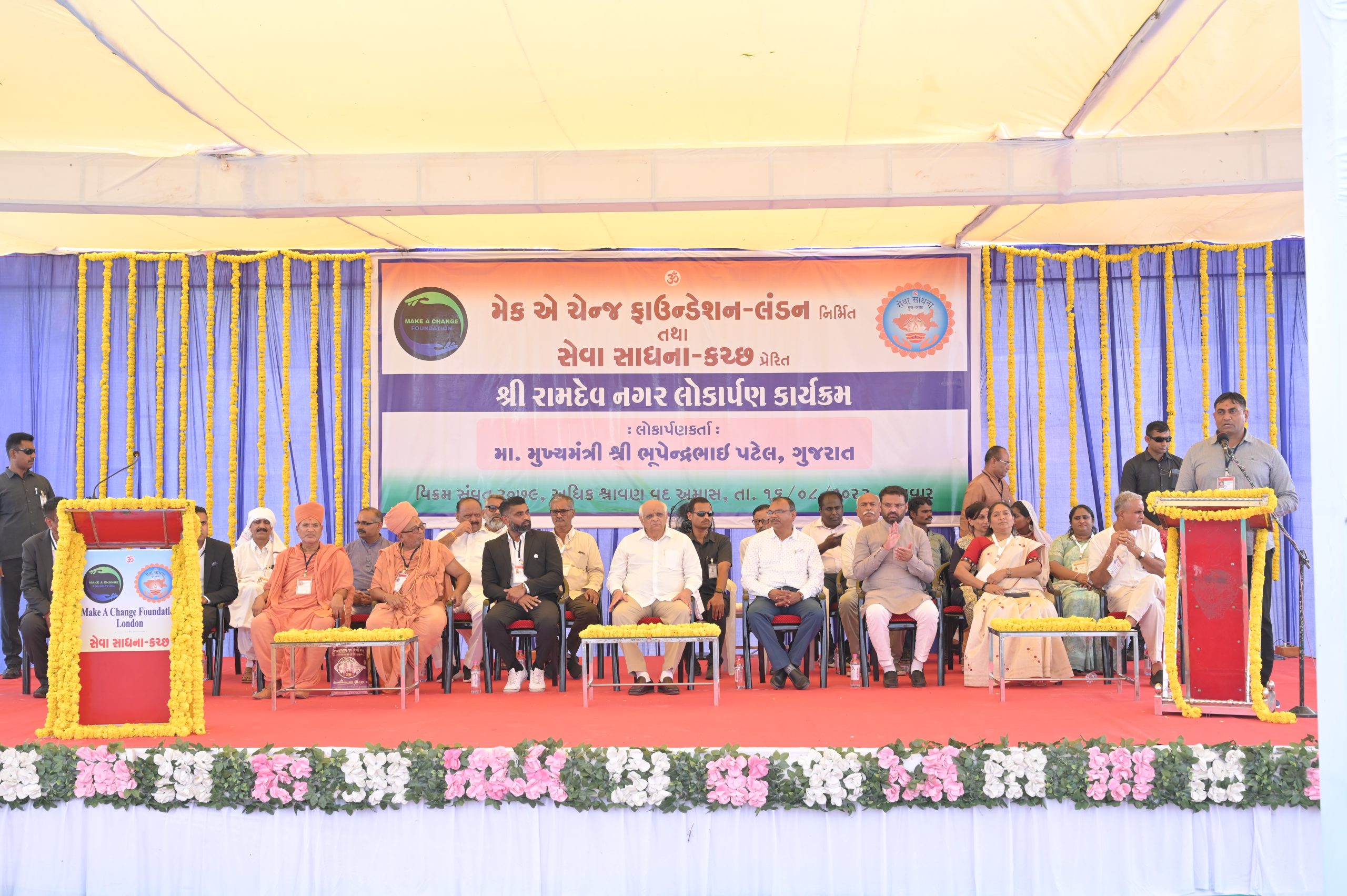 The Chief Minister of Gujarat Shri Bhupendrabhai Patel was the esteemed guest at the grand opening ceremony of newly constructed Sri Ramdev Nagar by the “Make a Change” Foundation. The event marked a significant milestone in the Foundation’s efforts to provide affordable housing to those in need. The Chief Minister commended the Foundation’s dedication to improving the lives of the less fortunate and praised their collaborative approach to addressing social issues.