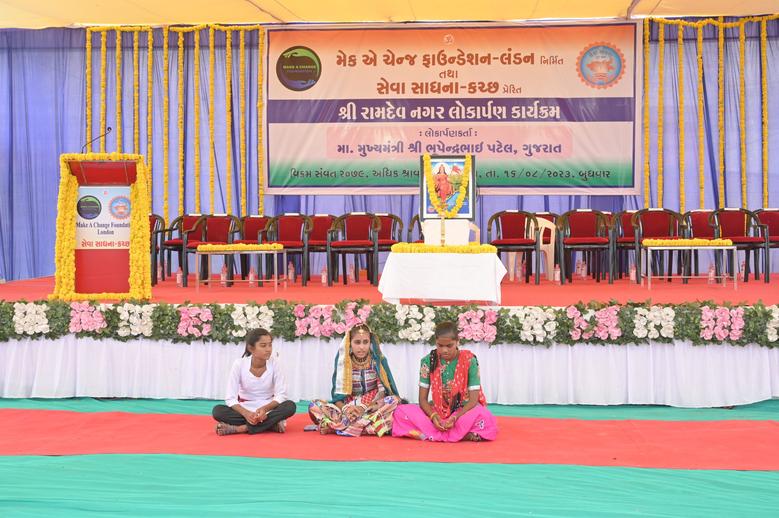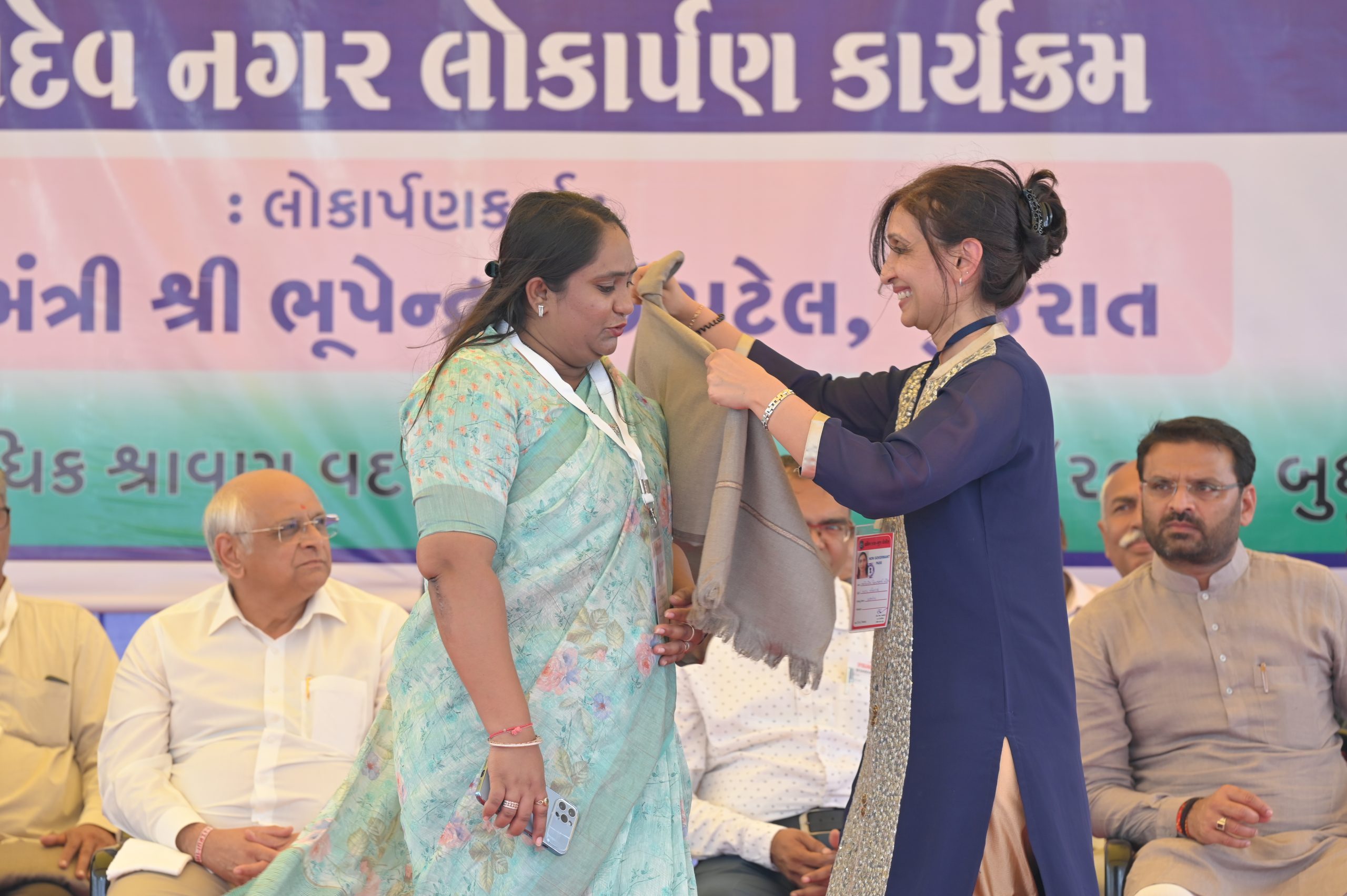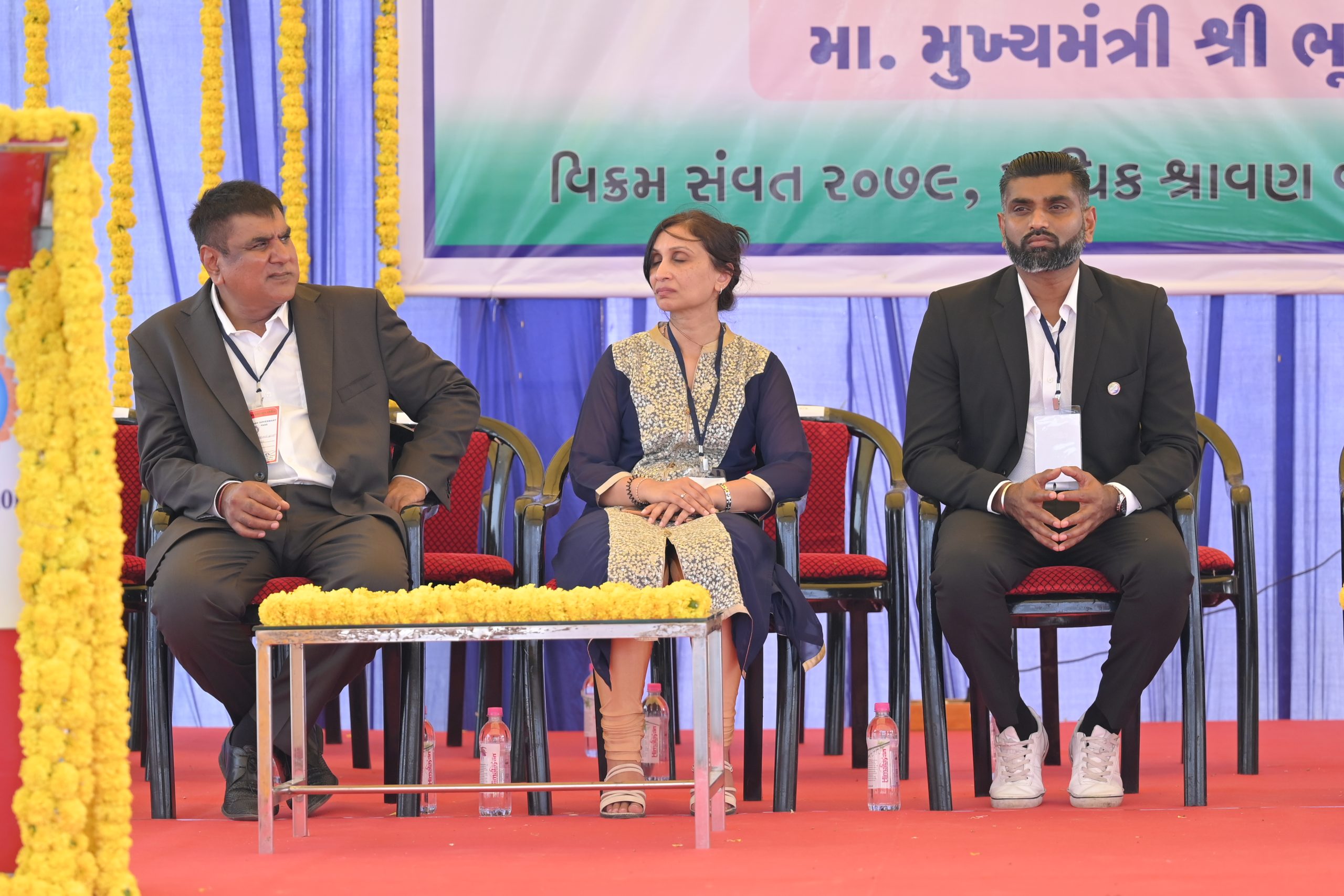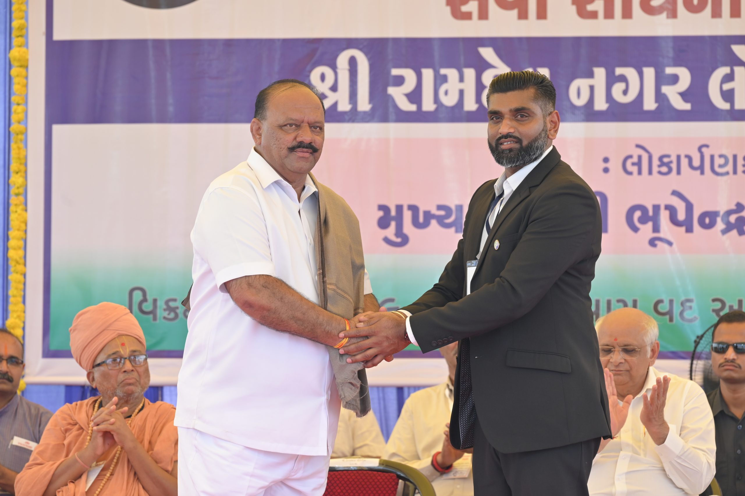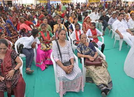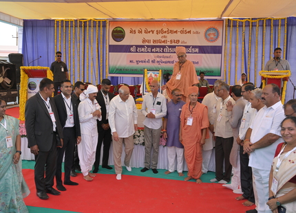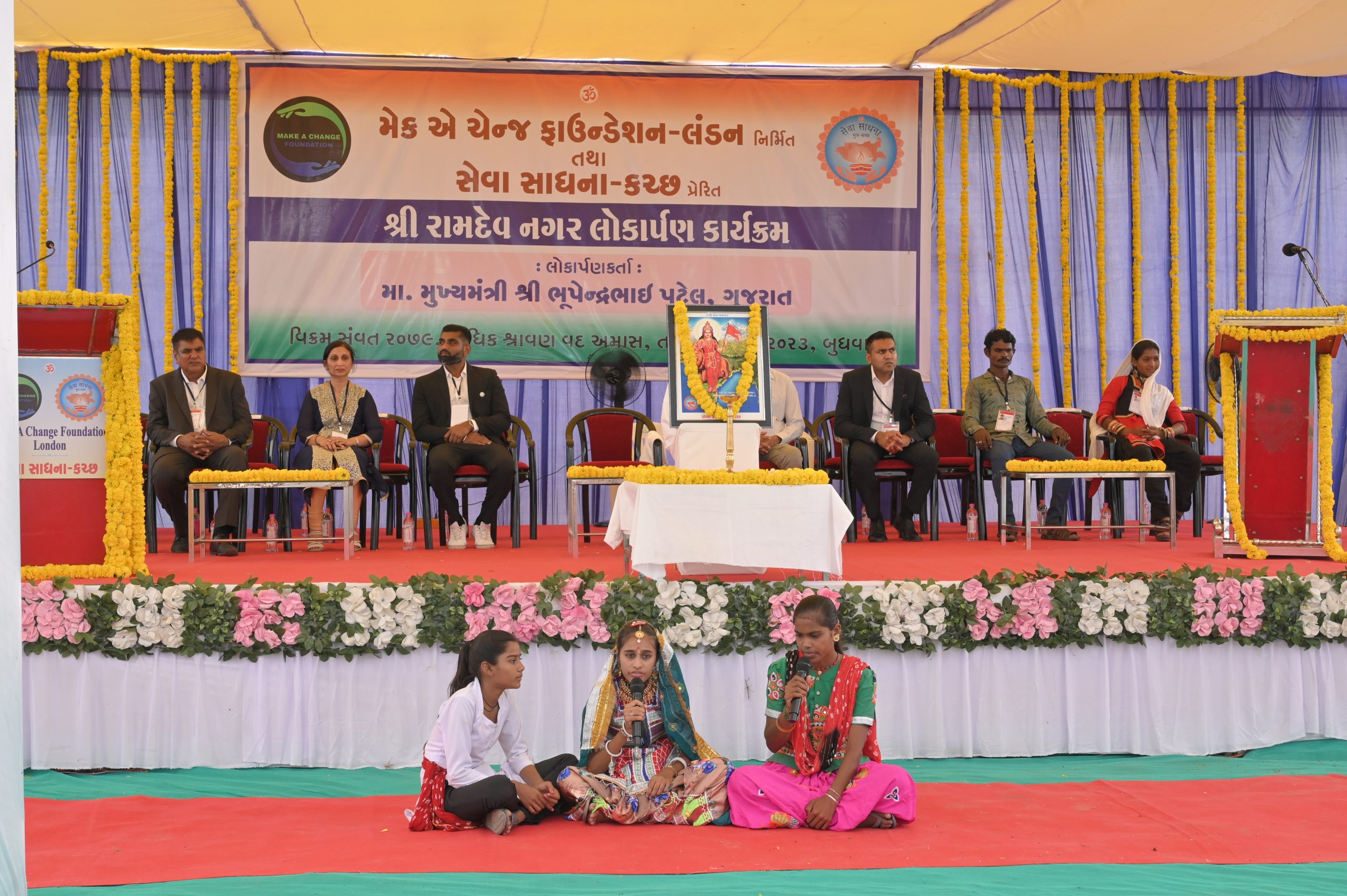 The Chief Minister, alongside the other distinguished guests, including Pujya Sant Shri Balkrishna Dasji and revered saints from Bhuj Mandir, Mrs. Parulben Kara, representing as the Panchayat of Kutch, MLA Shri Keshubhai Patel of the Bhuj Constituency, and Manjulaben Bhanderi, representing the Panchayat of the Taluka district, all added a sense of solemnity and significance to the event.