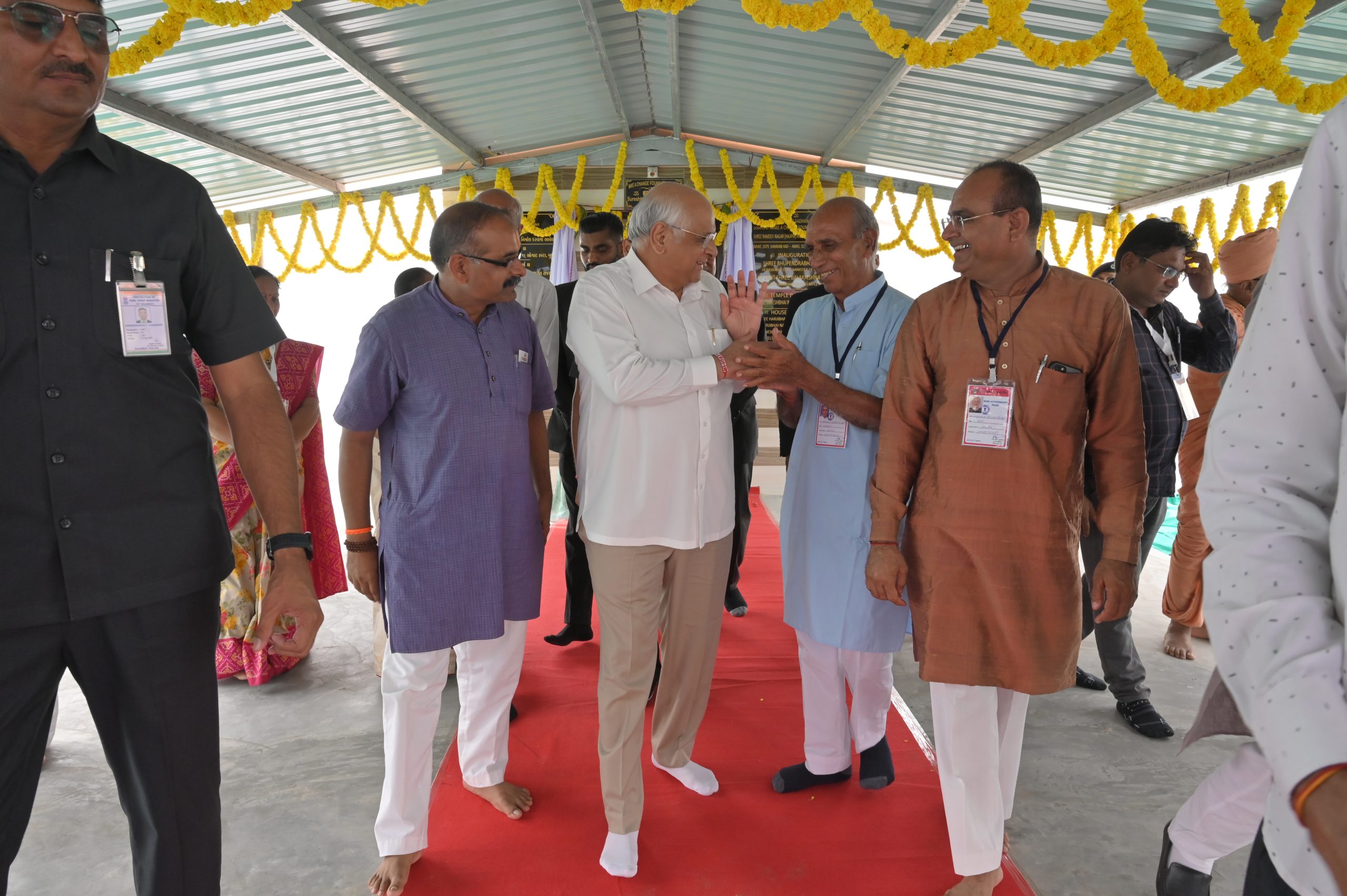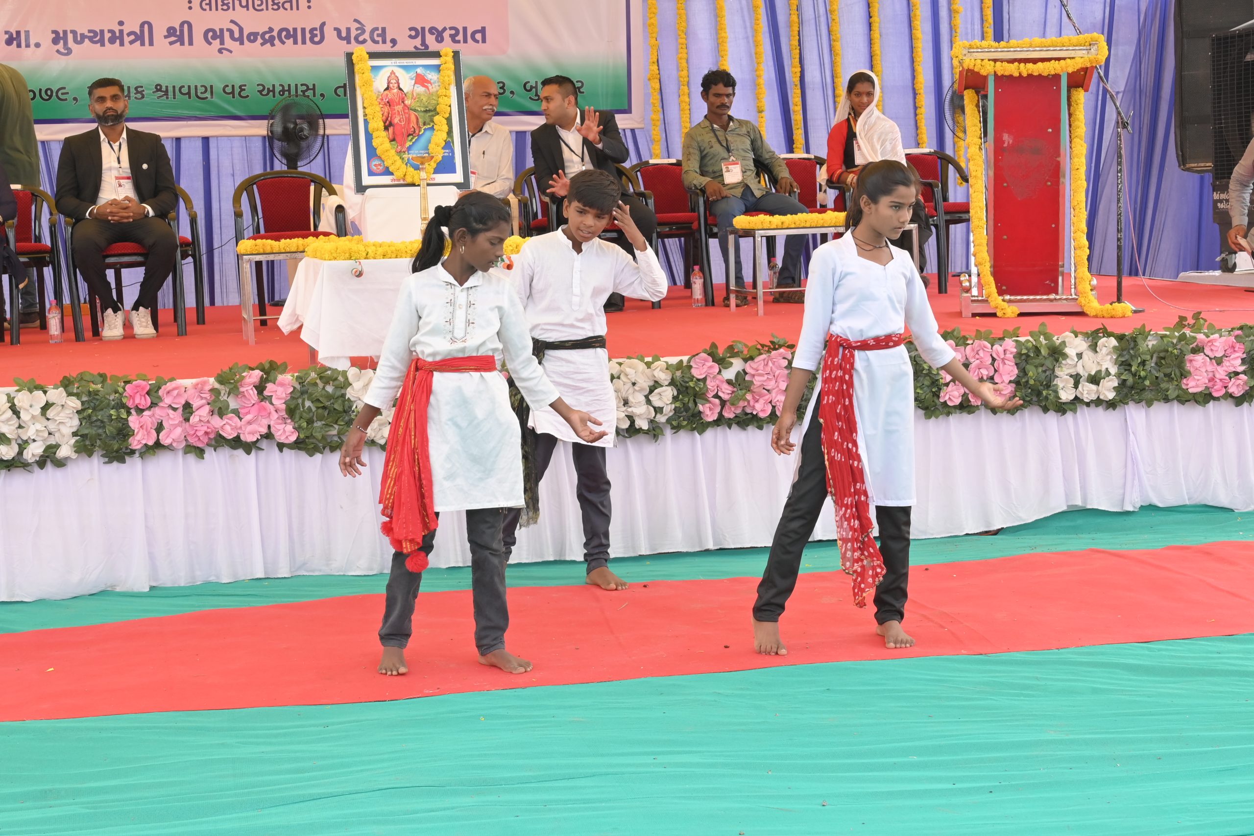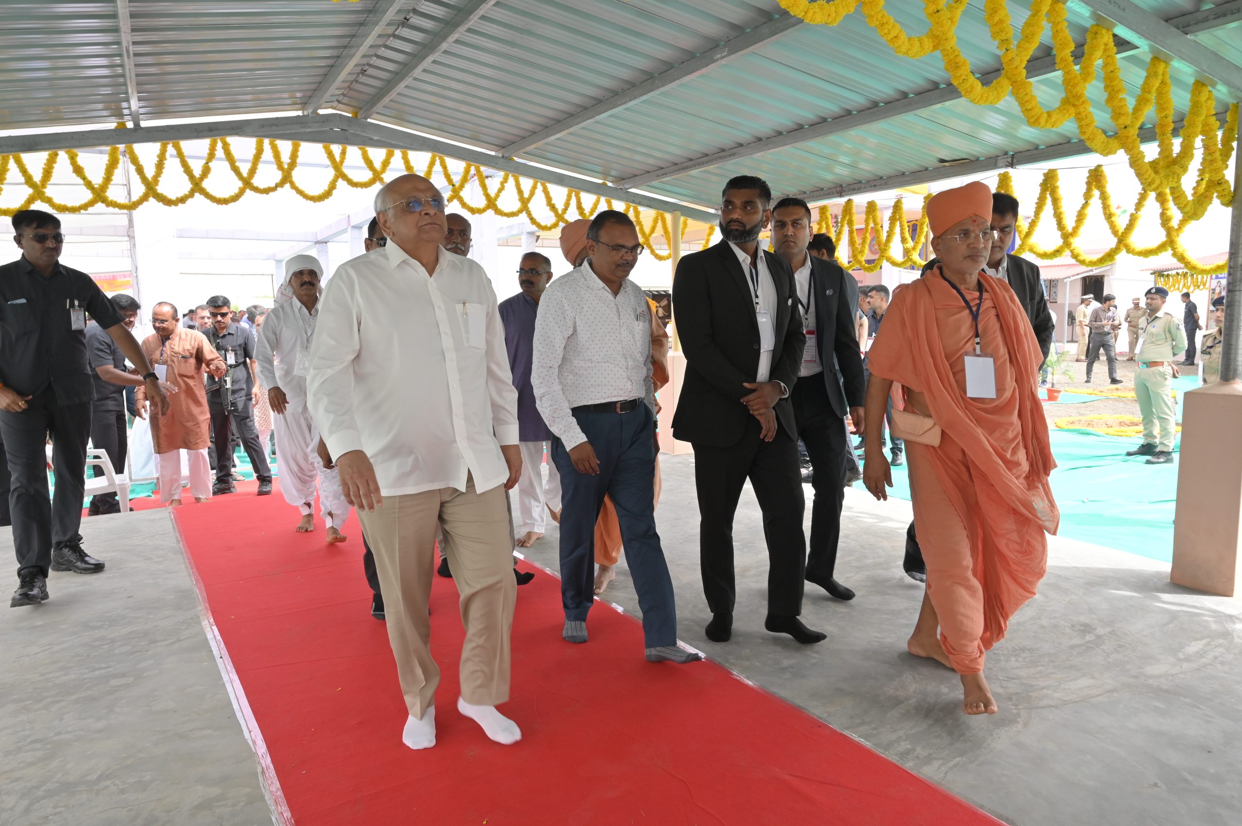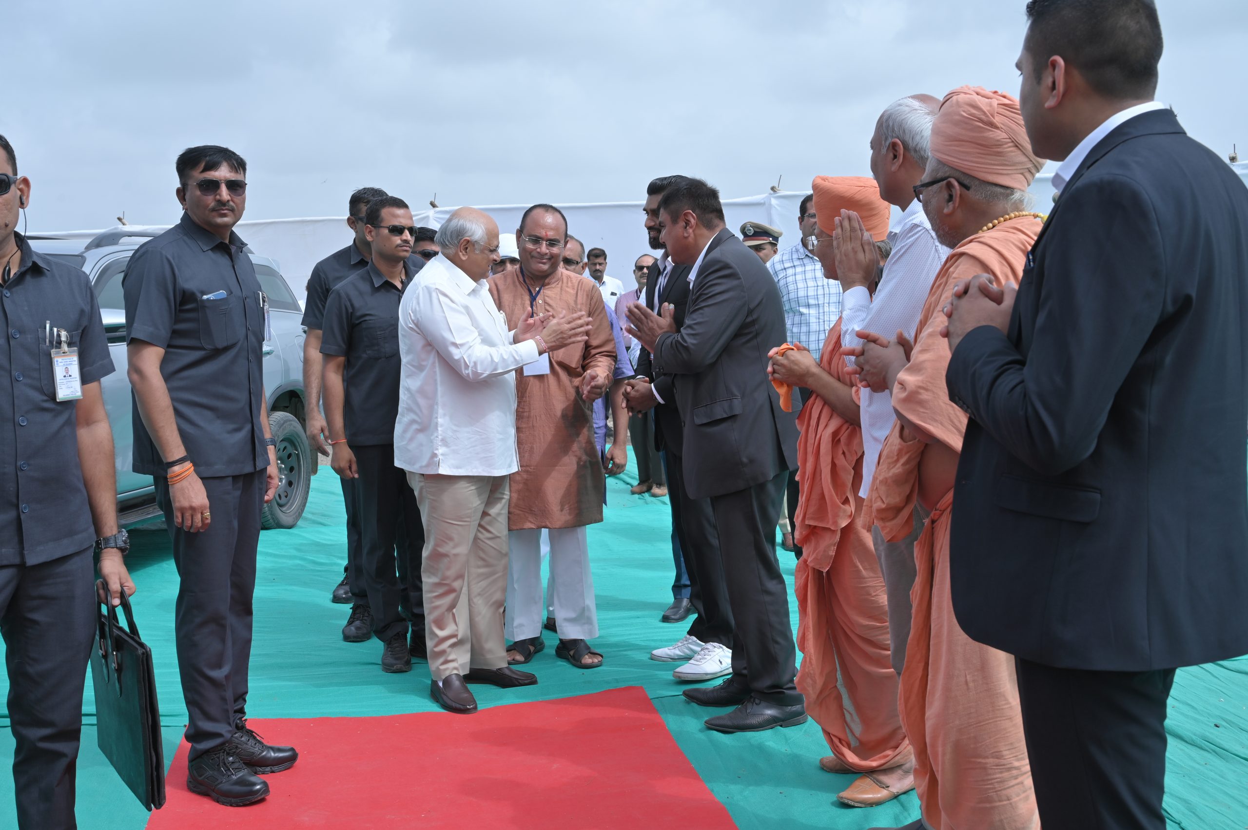 The Chief Minister, alongside the other distinguished guests, including Pujya Sant Shri Balkrishna Dasji and revered saints from Bhuj Mandir, Mrs. Parulben Kara, representing as the Panchayat of Kutch, MLA Shri Keshubhai Patel of the Bhuj Constituency, and Manjulaben Bhanderi, representing the Panchayat of the Taluka district, all added a sense of solemnity and significance to the event.