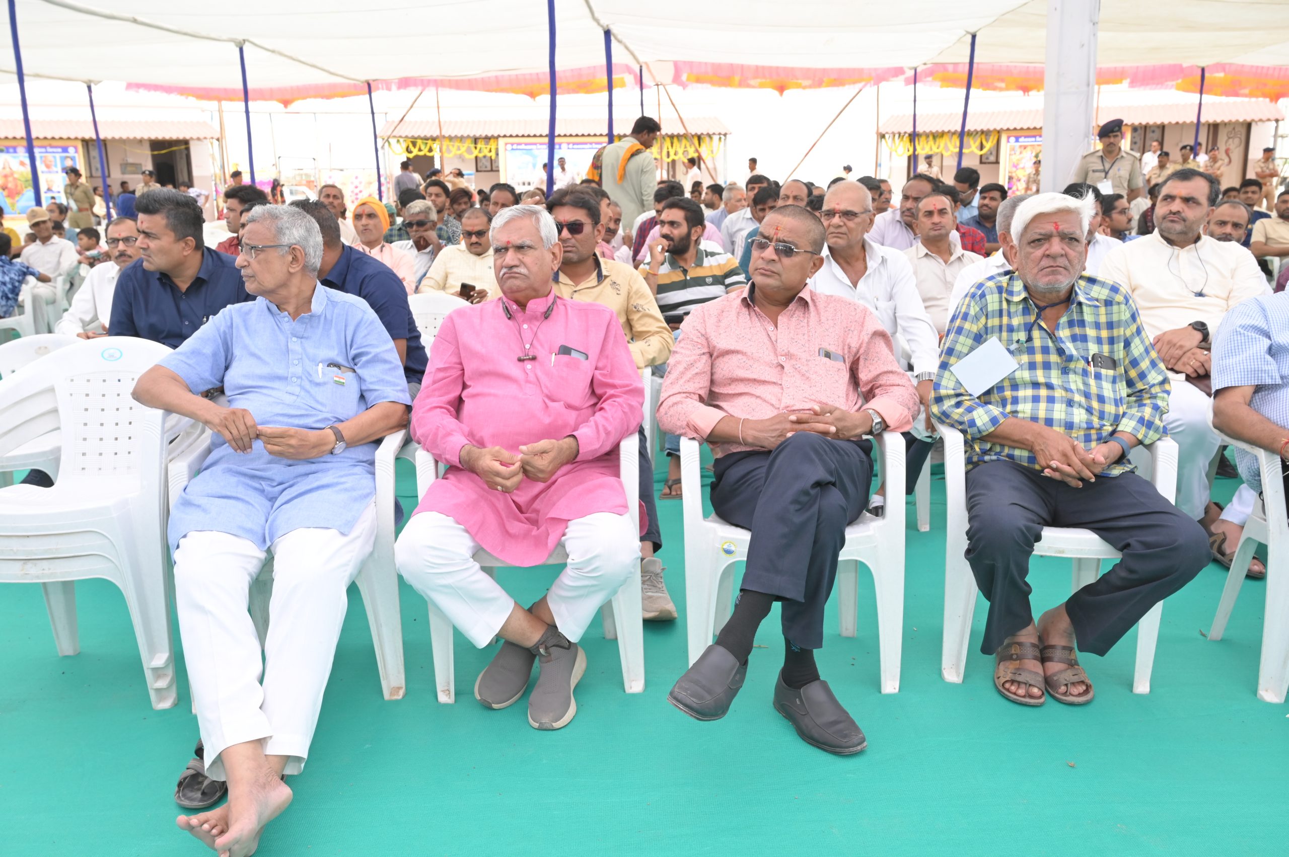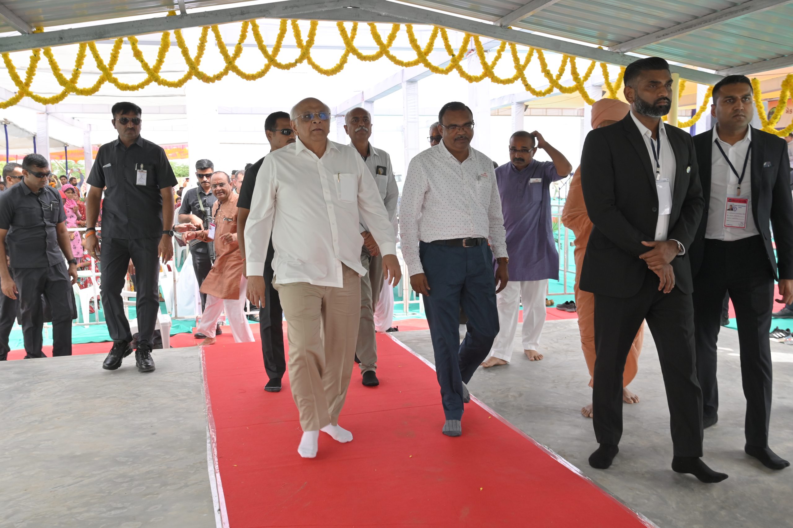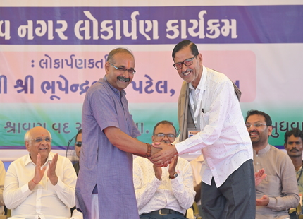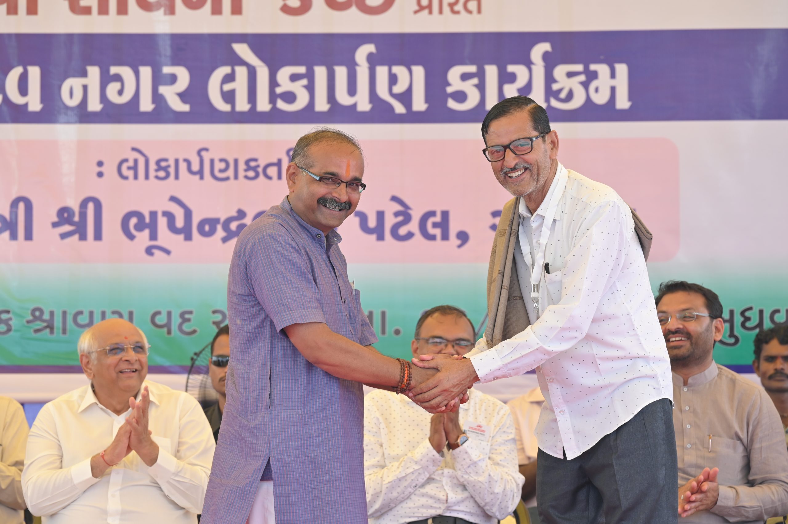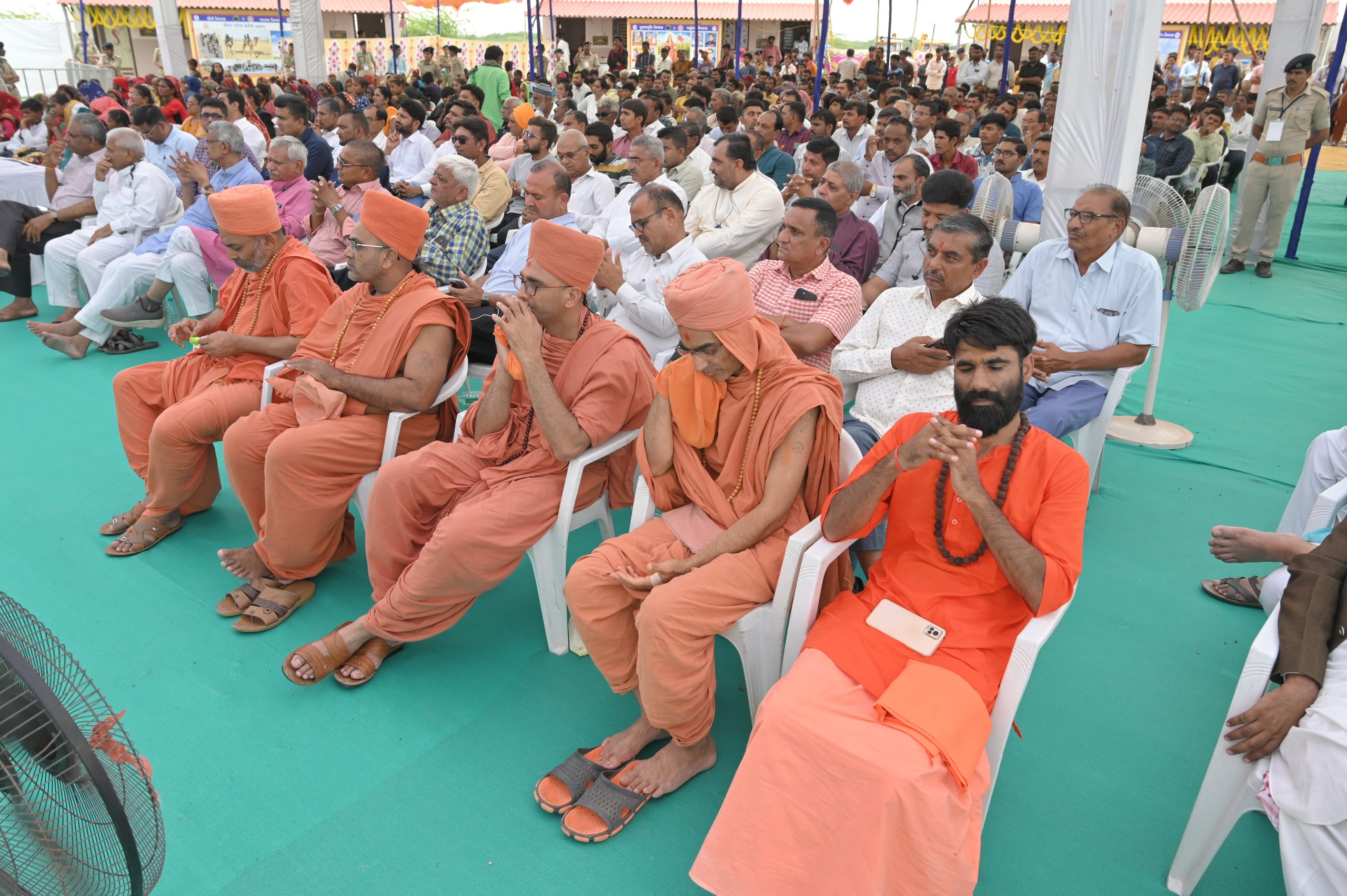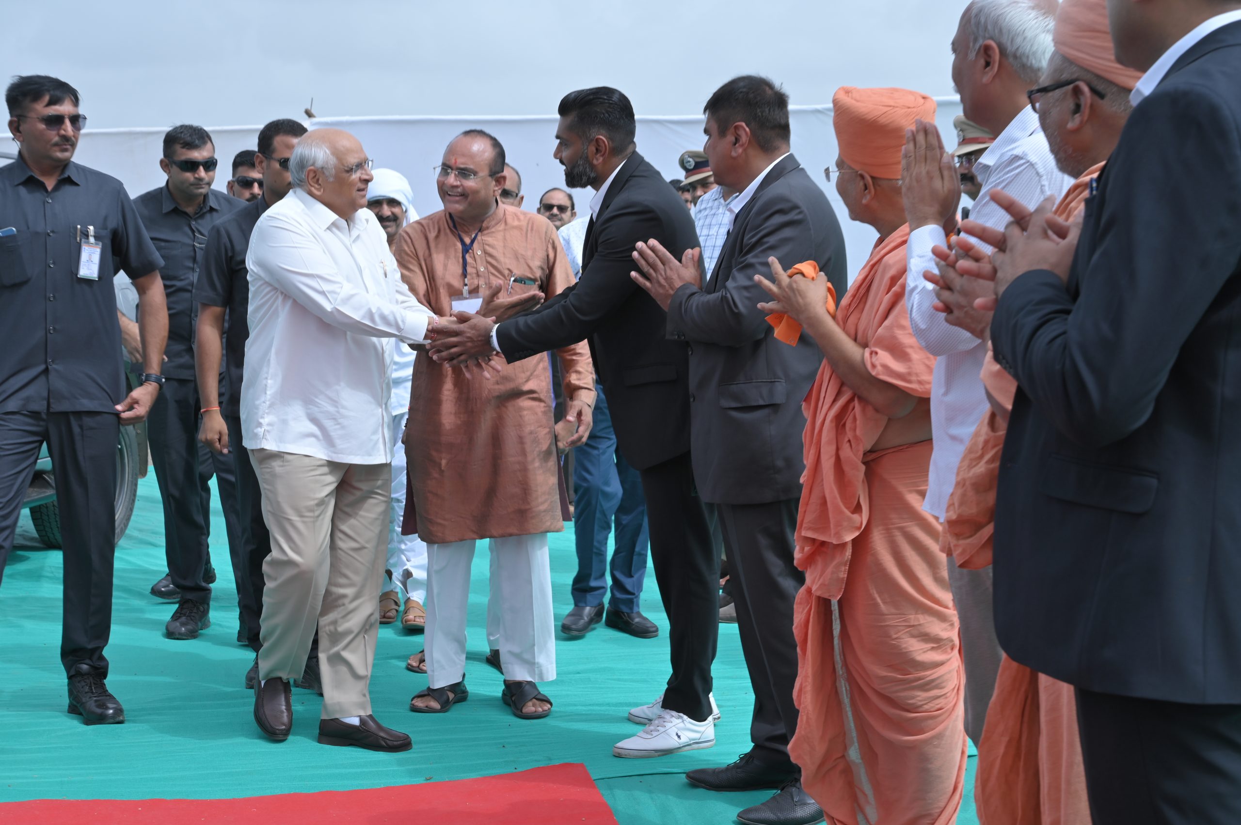 The Chief Minister, alongside the other distinguished guests, including Pujya Sant Shri Balkrishna Dasji and revered saints from Bhuj Mandir, Mrs. Parulben Kara, representing as the Panchayat of Kutch, MLA Shri Keshubhai Patel of the Bhuj Constituency, and Manjulaben Bhanderi, representing the Panchayat of the Taluka district, all added a sense of solemnity and significance to the event.