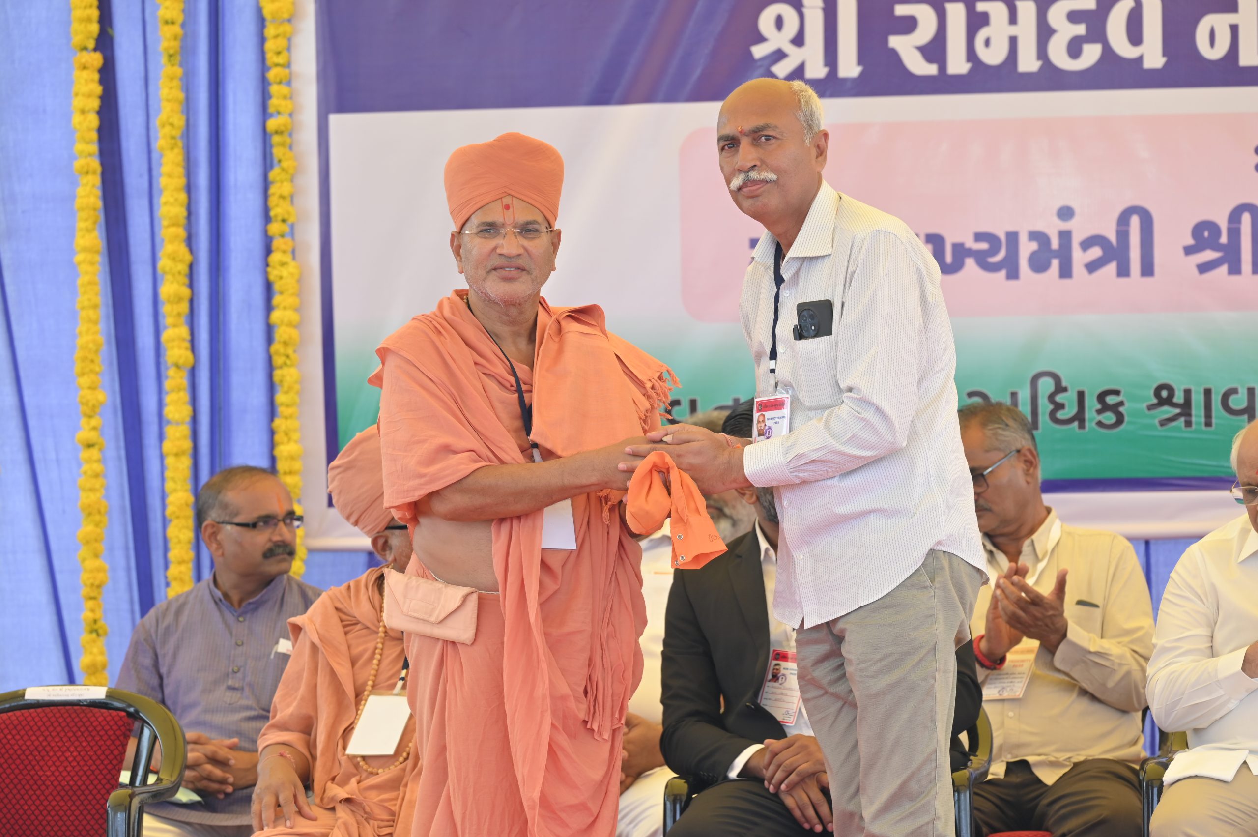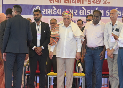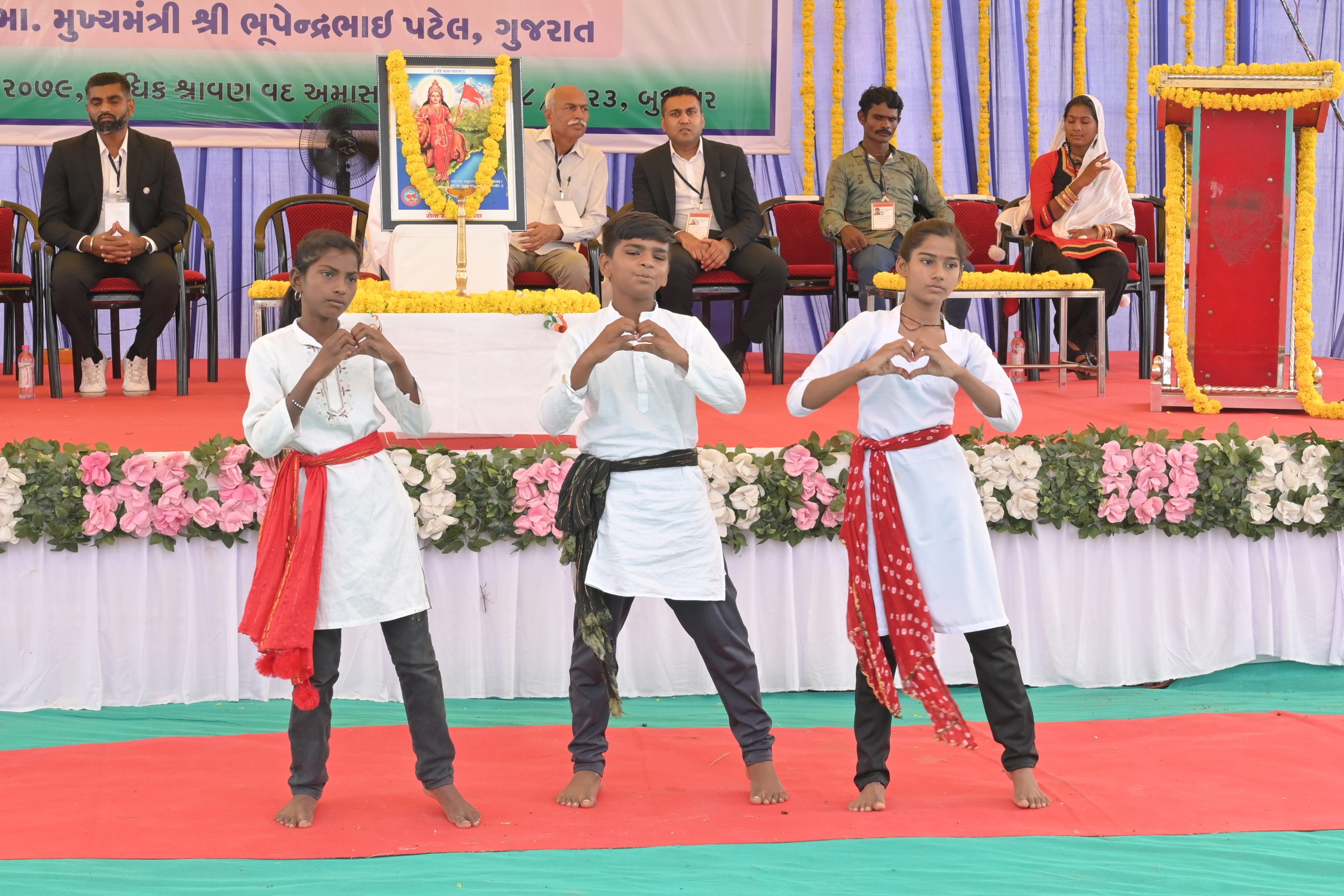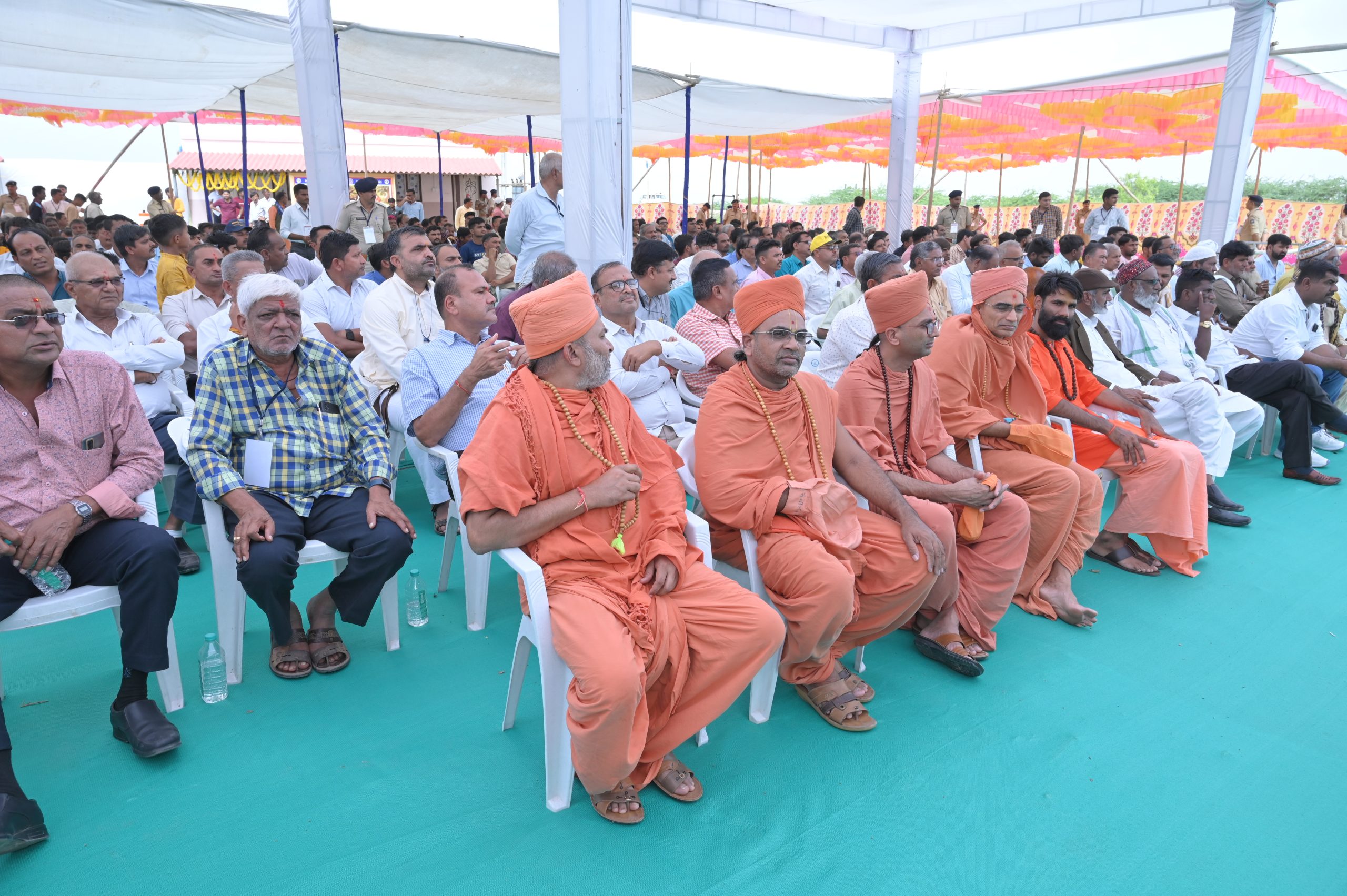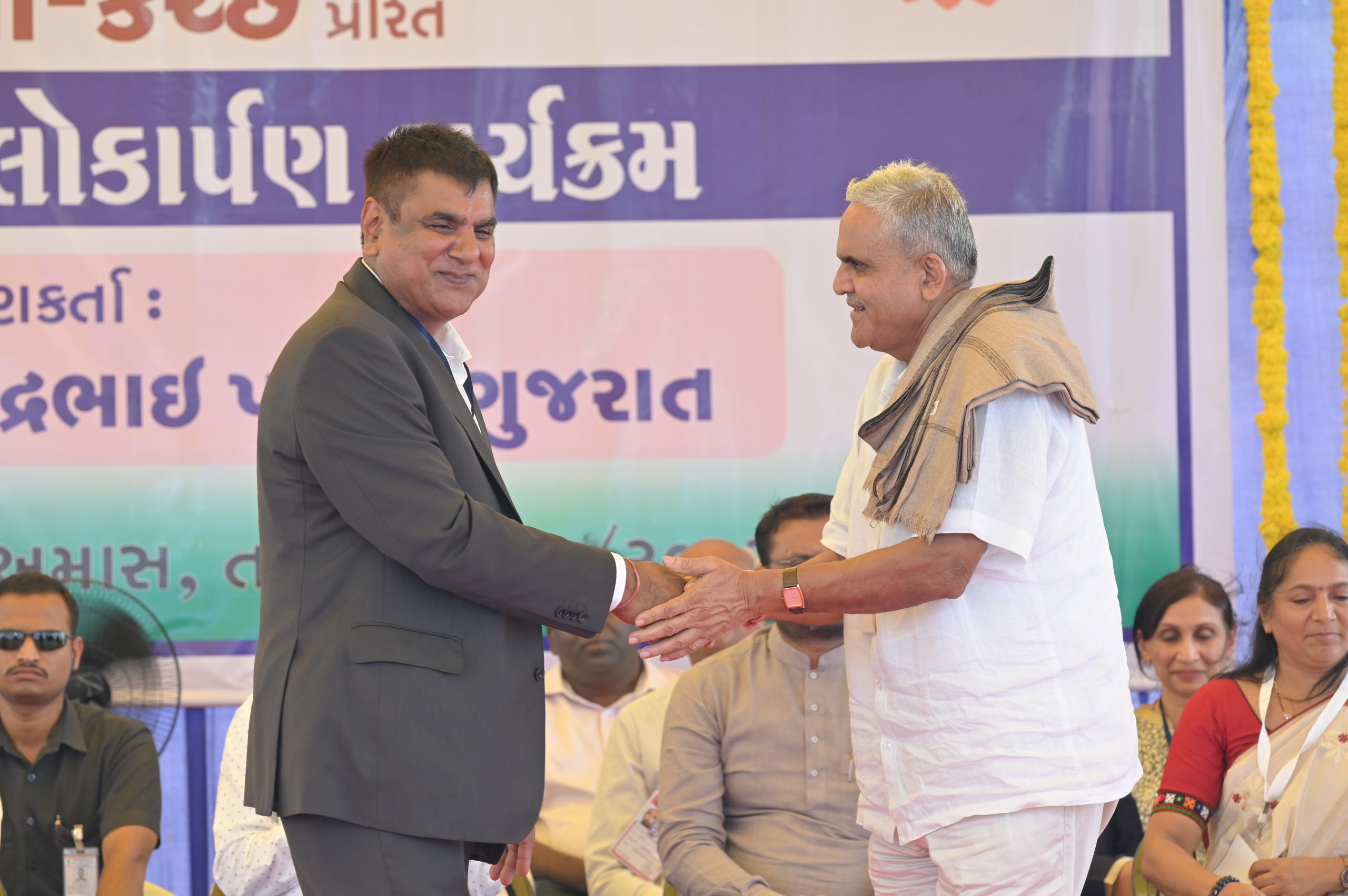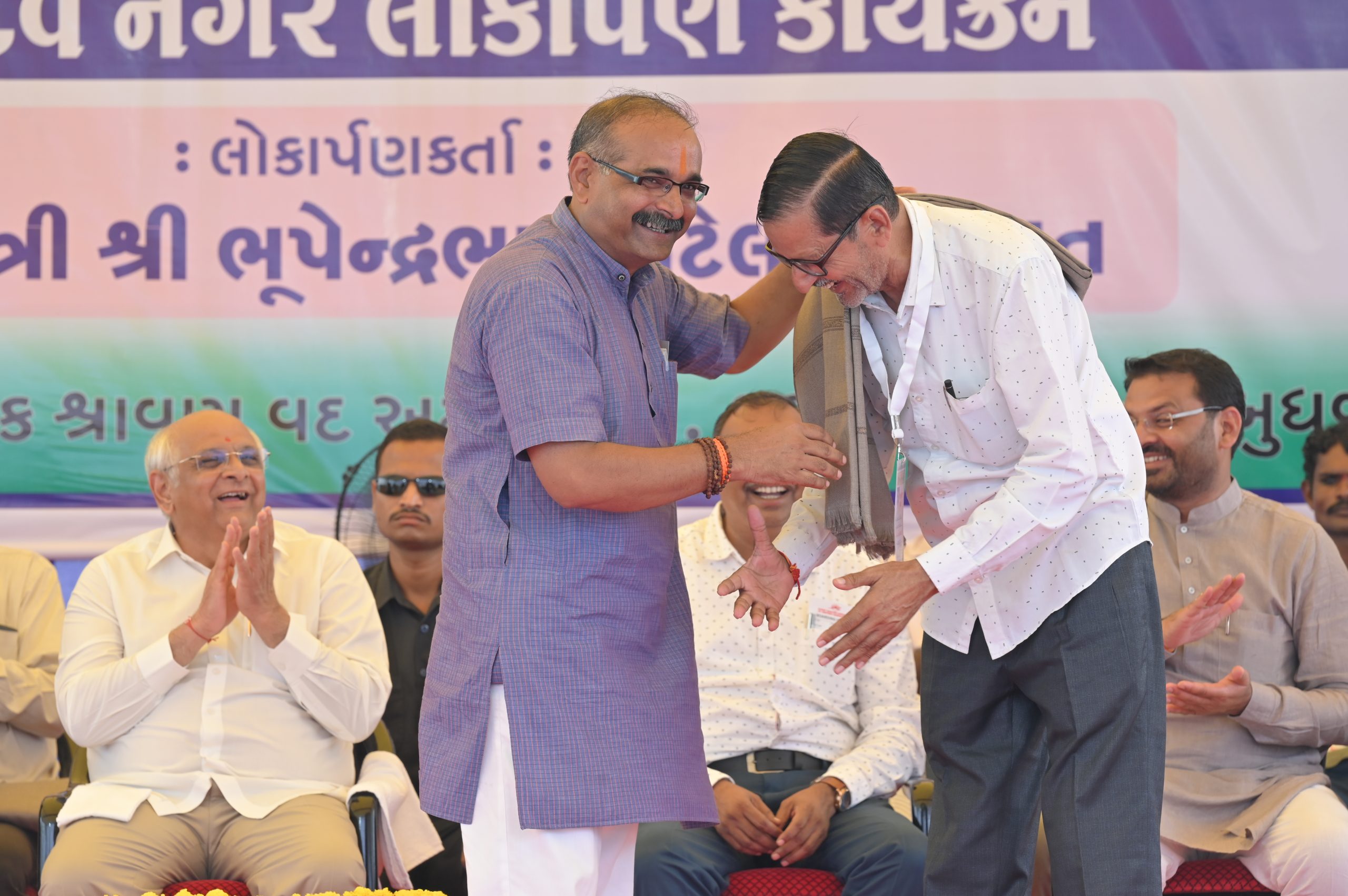 The Chief Minister, alongside the other distinguished guests, including Pujya Sant Shri Balkrishna Dasji and revered saints from Bhuj Mandir, Mrs. Parulben Kara, representing as the Panchayat of Kutch, MLA Shri Keshubhai Patel of the Bhuj Constituency, and Manjulaben Bhanderi, representing the Panchayat of the Taluka district, all added a sense of solemnity and significance to the event.