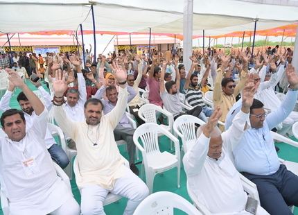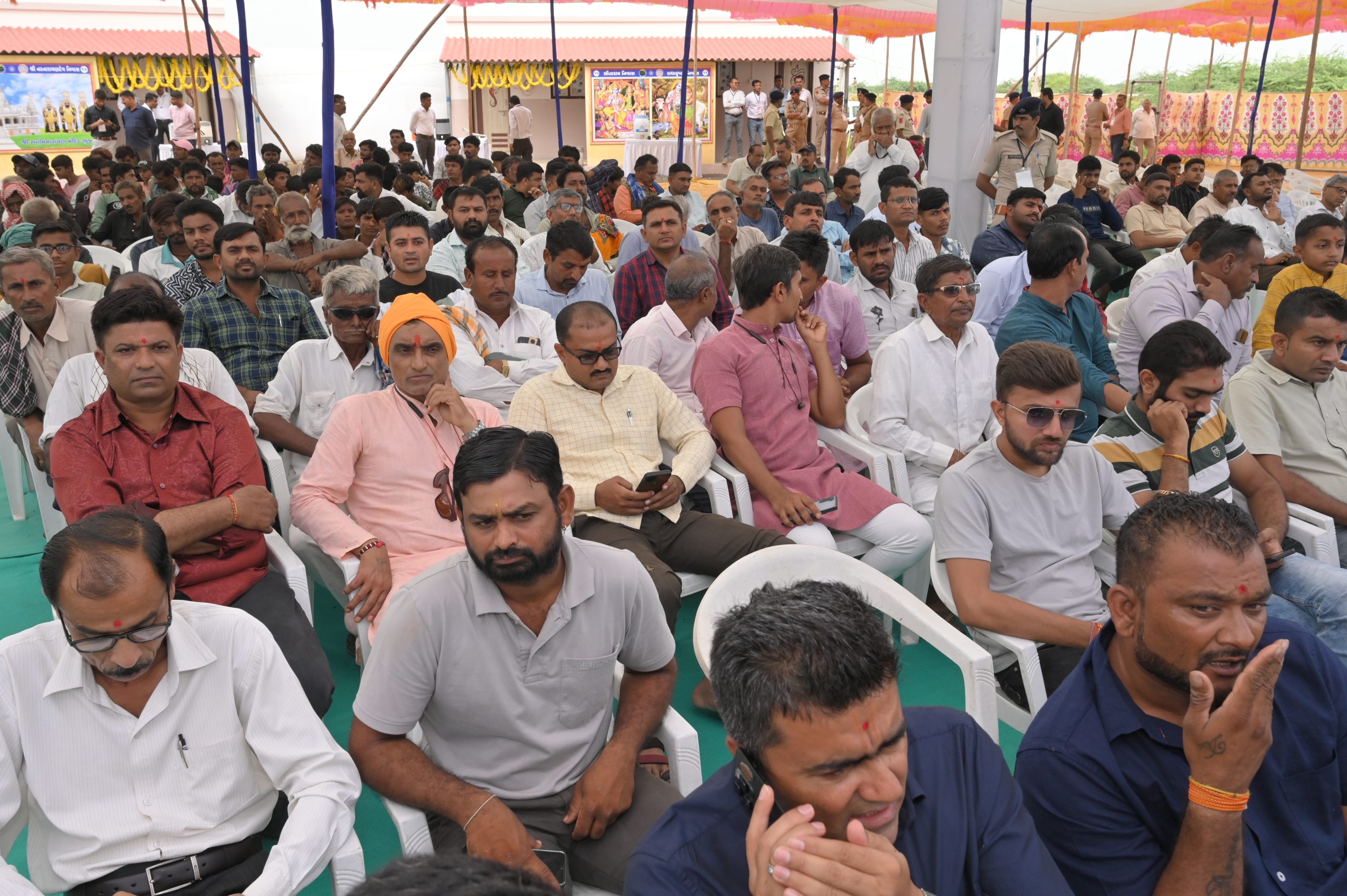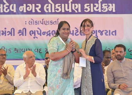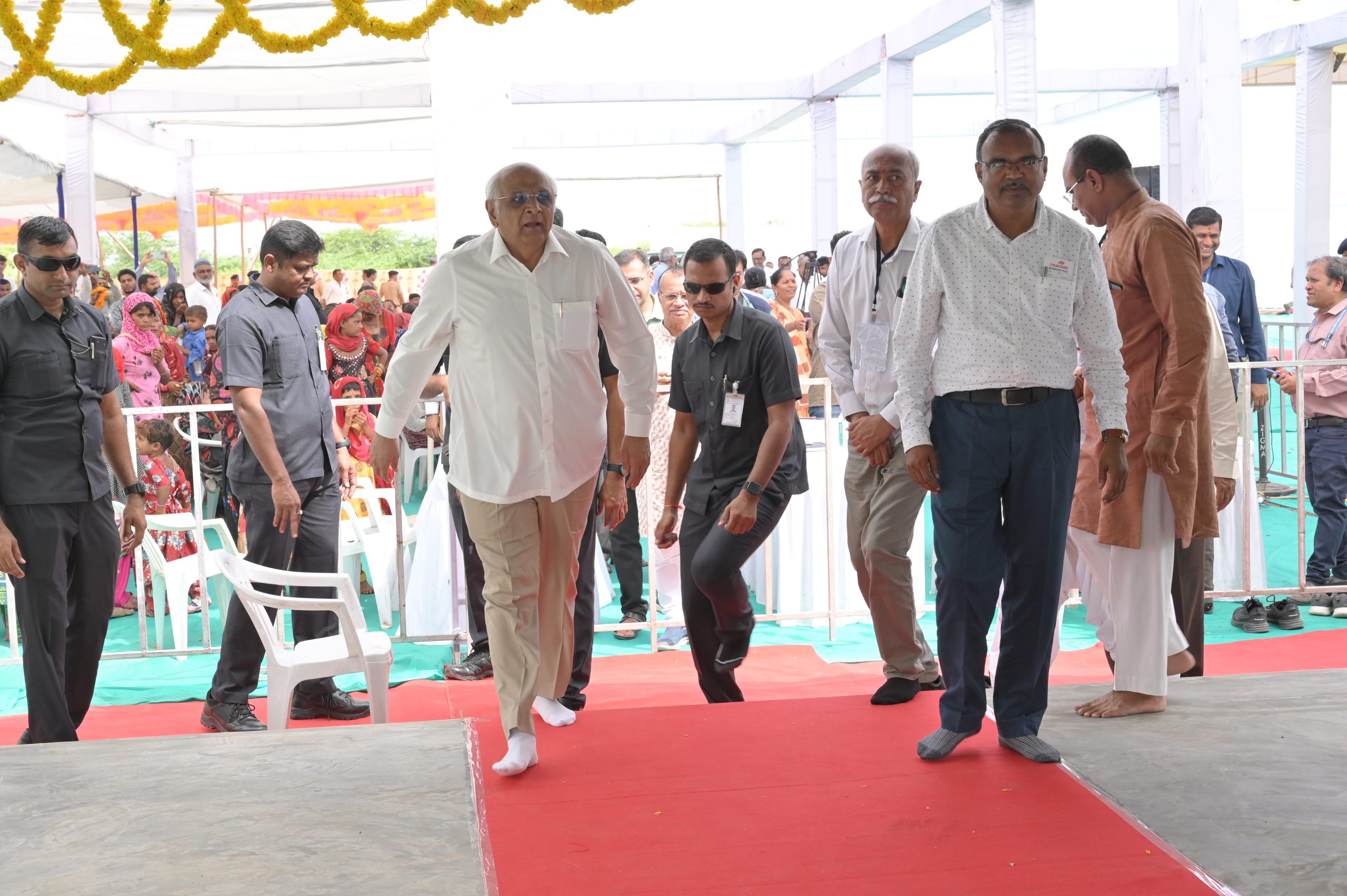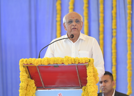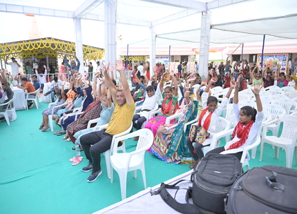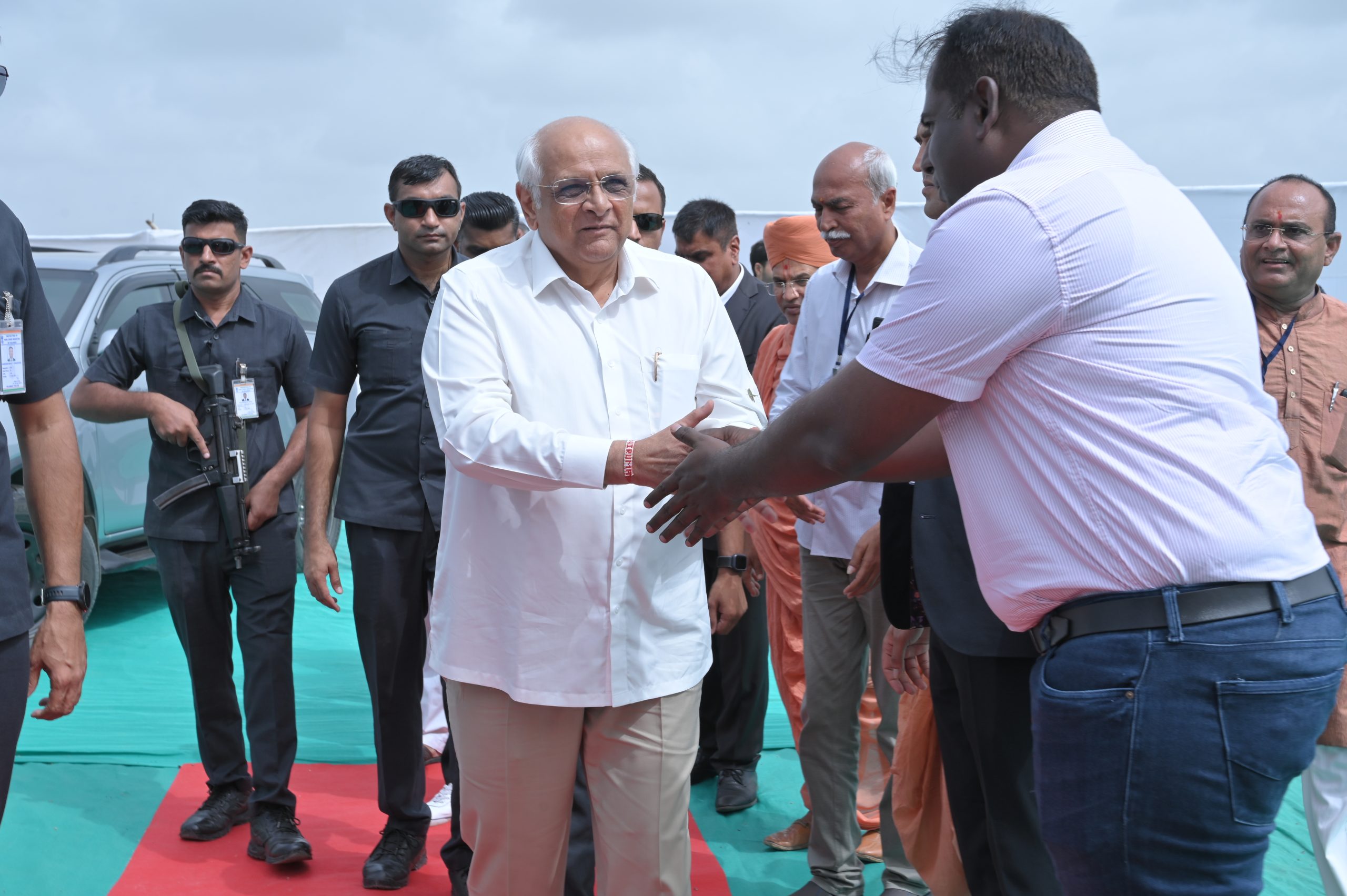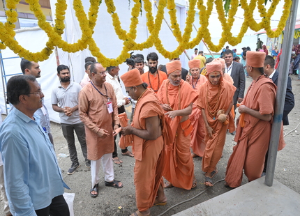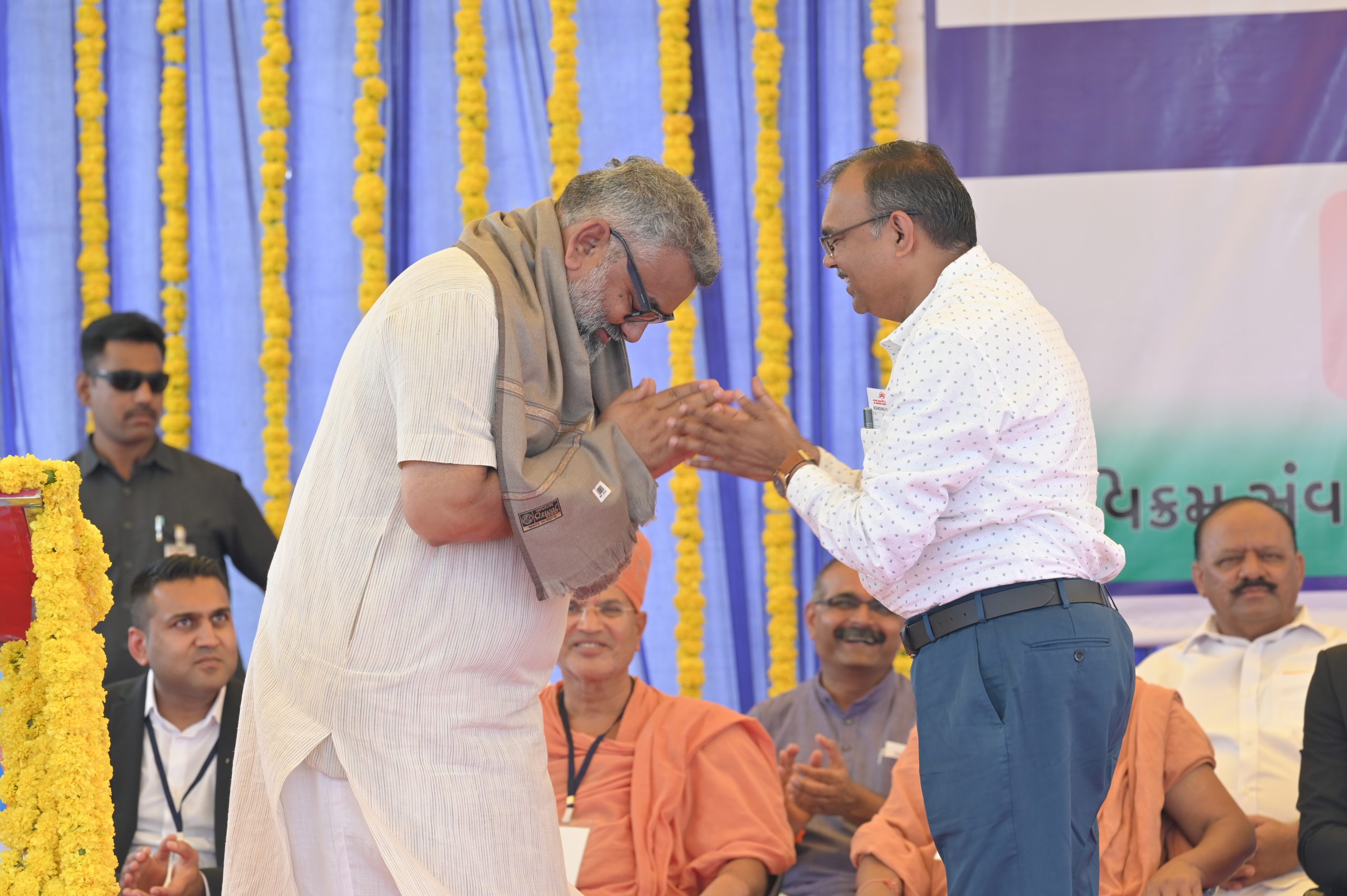 The Chief Minister, alongside the other distinguished guests, including Pujya Sant Shri Balkrishna Dasji and revered saints from Bhuj Mandir, Mrs. Parulben Kara, representing as the Panchayat of Kutch, MLA Shri Keshubhai Patel of the Bhuj Constituency, and Manjulaben Bhanderi, representing the Panchayat of the Taluka district, all added a sense of solemnity and significance to the event.