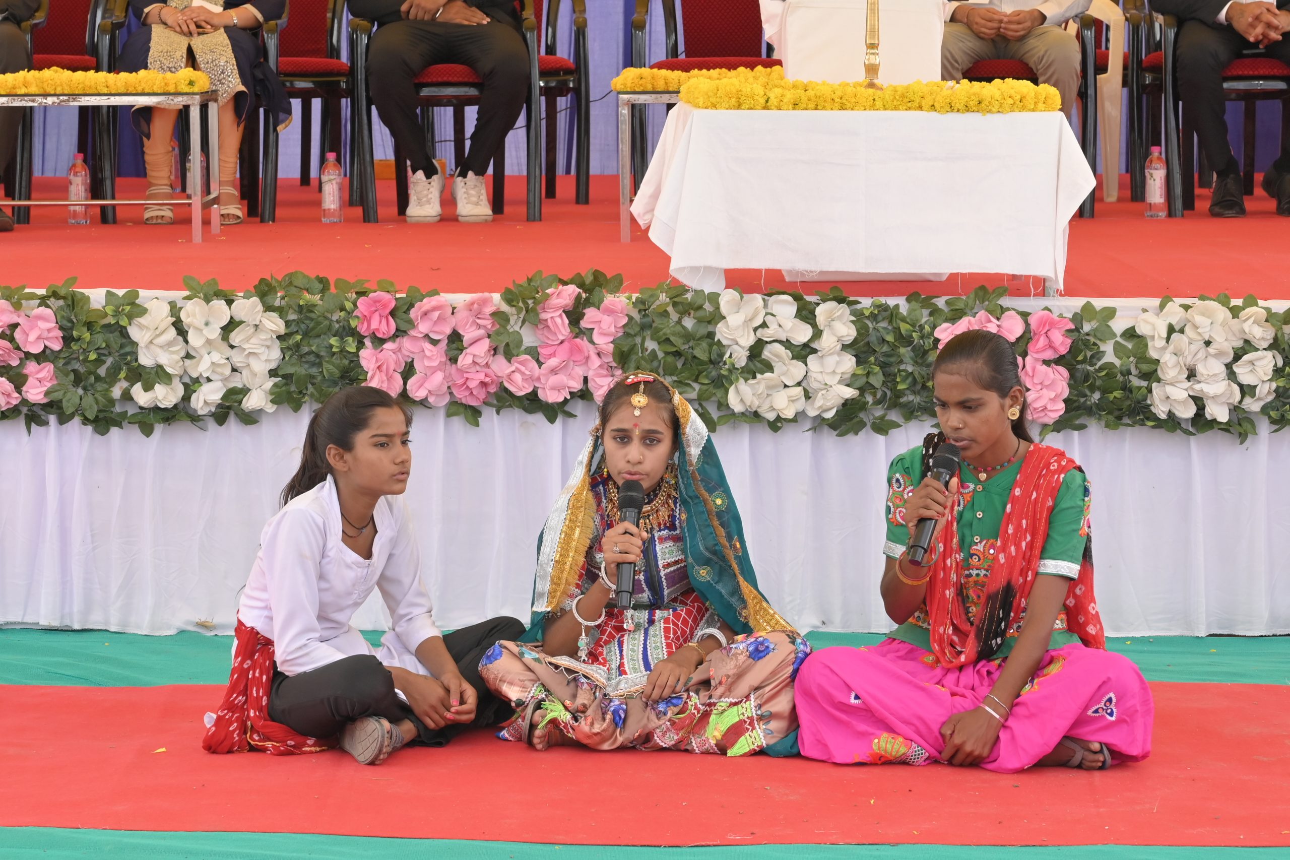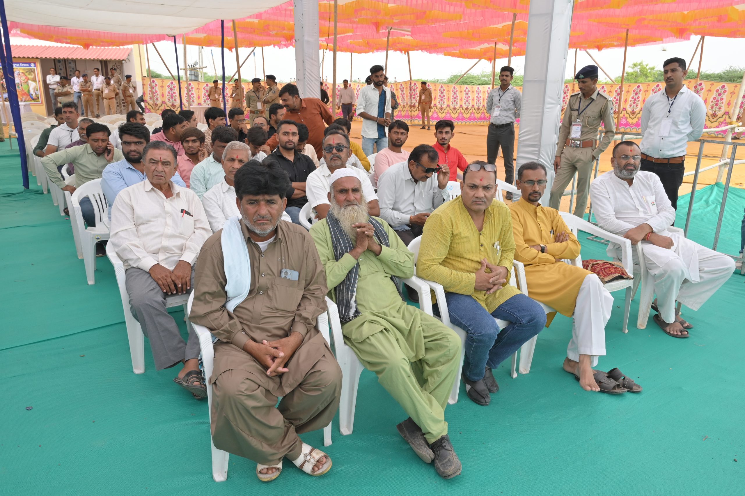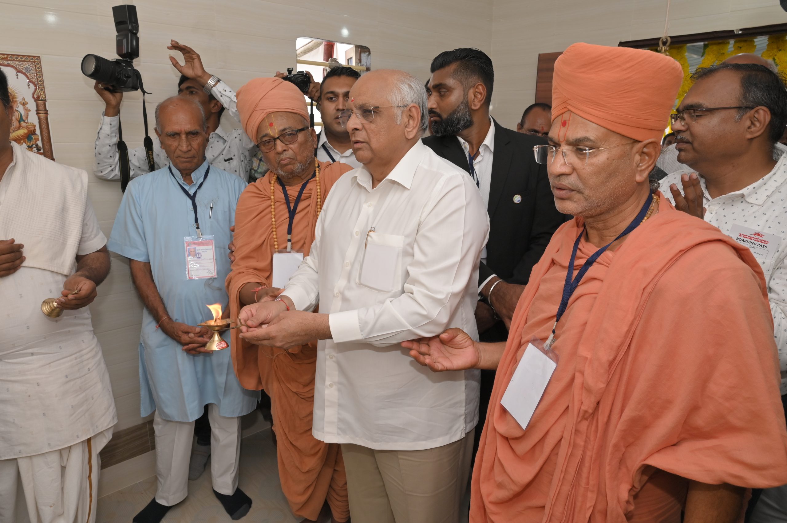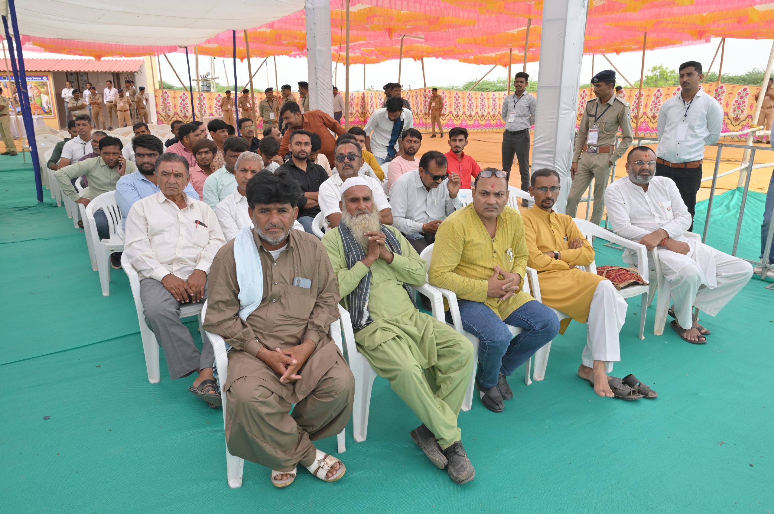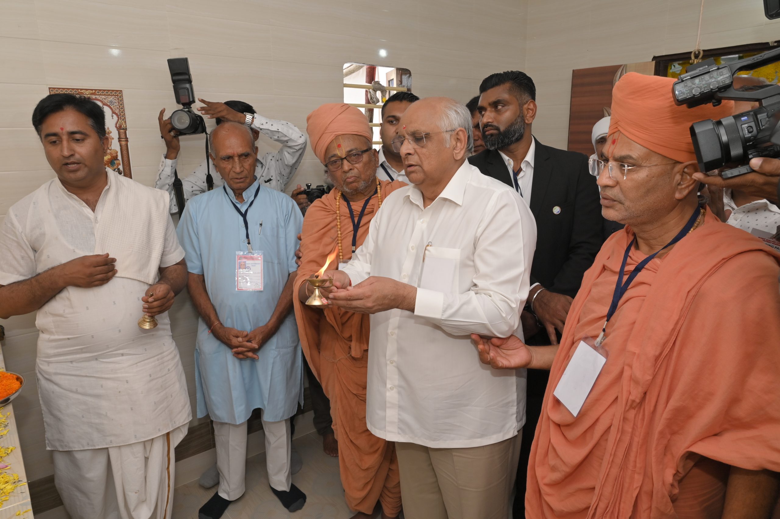 The Chief Minister, alongside the other distinguished guests, including Pujya Sant Shri Balkrishna Dasji and revered saints from Bhuj Mandir, Mrs. Parulben Kara, representing as the Panchayat of Kutch, MLA Shri Keshubhai Patel of the Bhuj Constituency, and Manjulaben Bhanderi, representing the Panchayat of the Taluka district, all added a sense of solemnity and significance to the event.