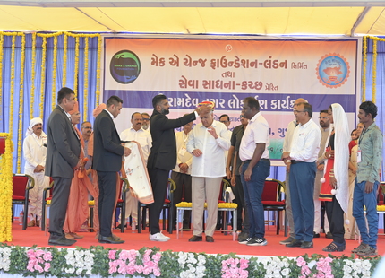 The ceremony took a spiritual turn with the presence of Pujya Sant Shri Balkrishna Dasji and revered saints from Bhuj Mandir, infusing the event with blessings and a sense of divine purpose. Mrs. Parulben Kara, a representative of the Panchayat of Kutch, expressed her appreciation for the Foundation’s work in uplifting the local community.